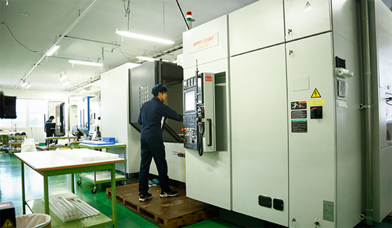 当社では「お客様のご要望に応える」という視点で、設備の充実を進めてきました。現在は最新型のマシニングセンタやNC複合機を駆使し、主にプラスチックを対象とした機械加工を行っています。特に精密加工、回転体三次元加工を得意としています。加工設備の性能を最大限に引き出すのは「人」です。