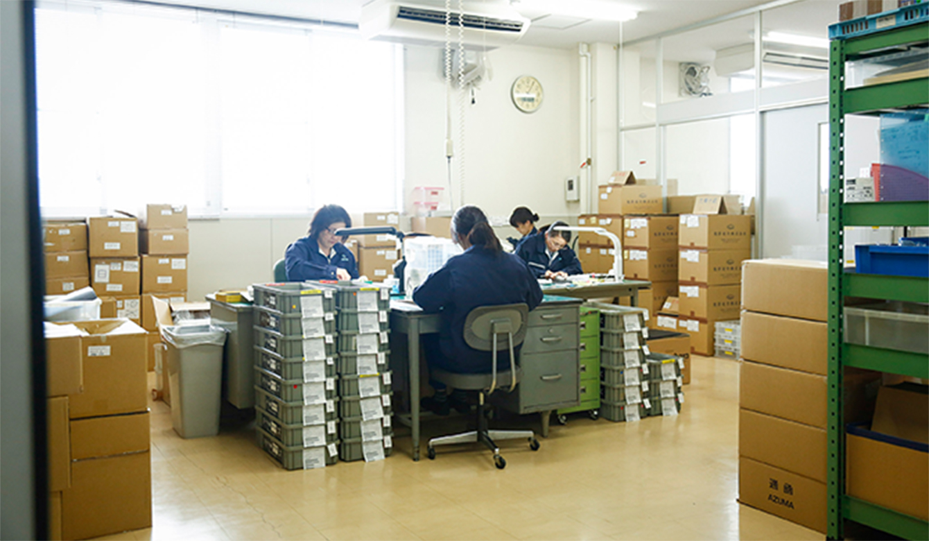 1個からの多品種少量生産にフレキシブルに対応するため、組立作業はすべて手作業で行っています。